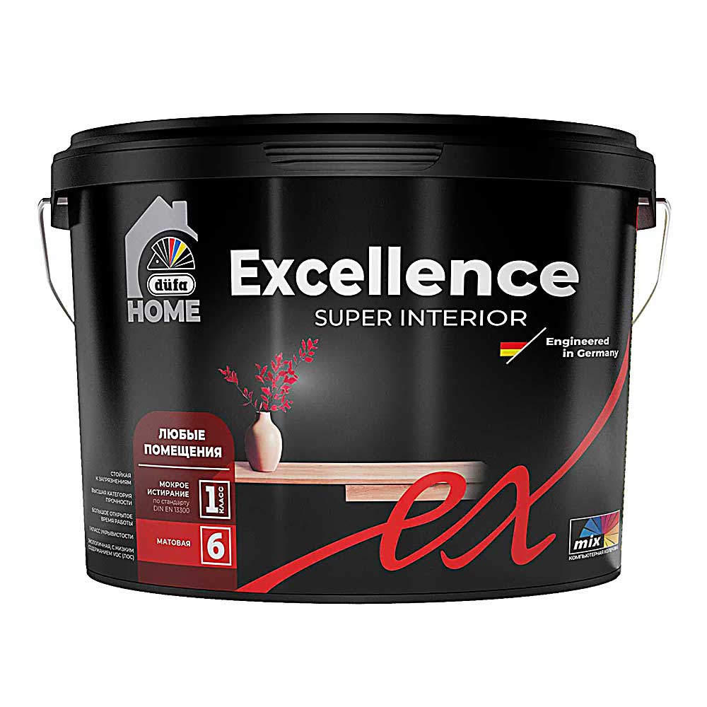 Краска интерьерная Dufa Home Excellence ультрастойкая антибактериальная, 9 л