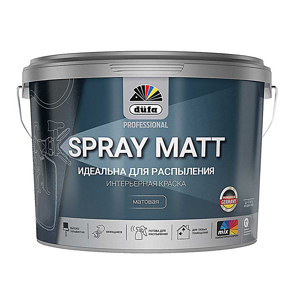 Краска интерьерная Dufa Professional SPRAY MATT идеальная для распыления, 9 л