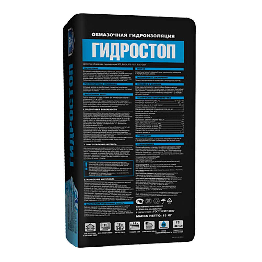 Гидроизоляция обмазочная UNIS ГИДРОСТОП цементная, 18 кг