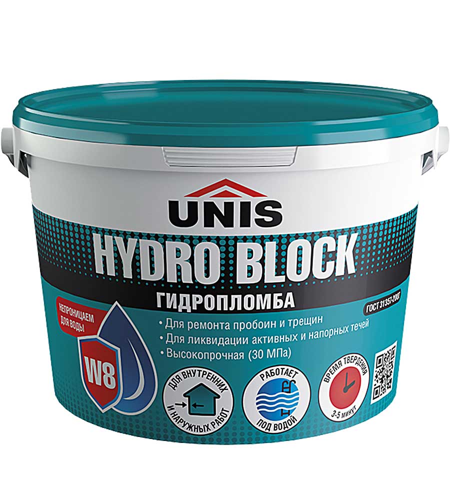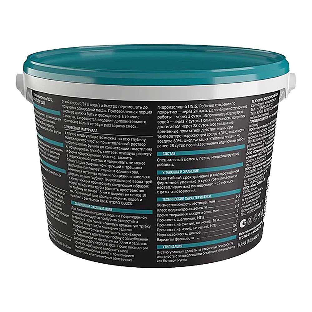 Гидропломба UNIS Hydro Block цементная быстротвердеющая, 0,8 кг