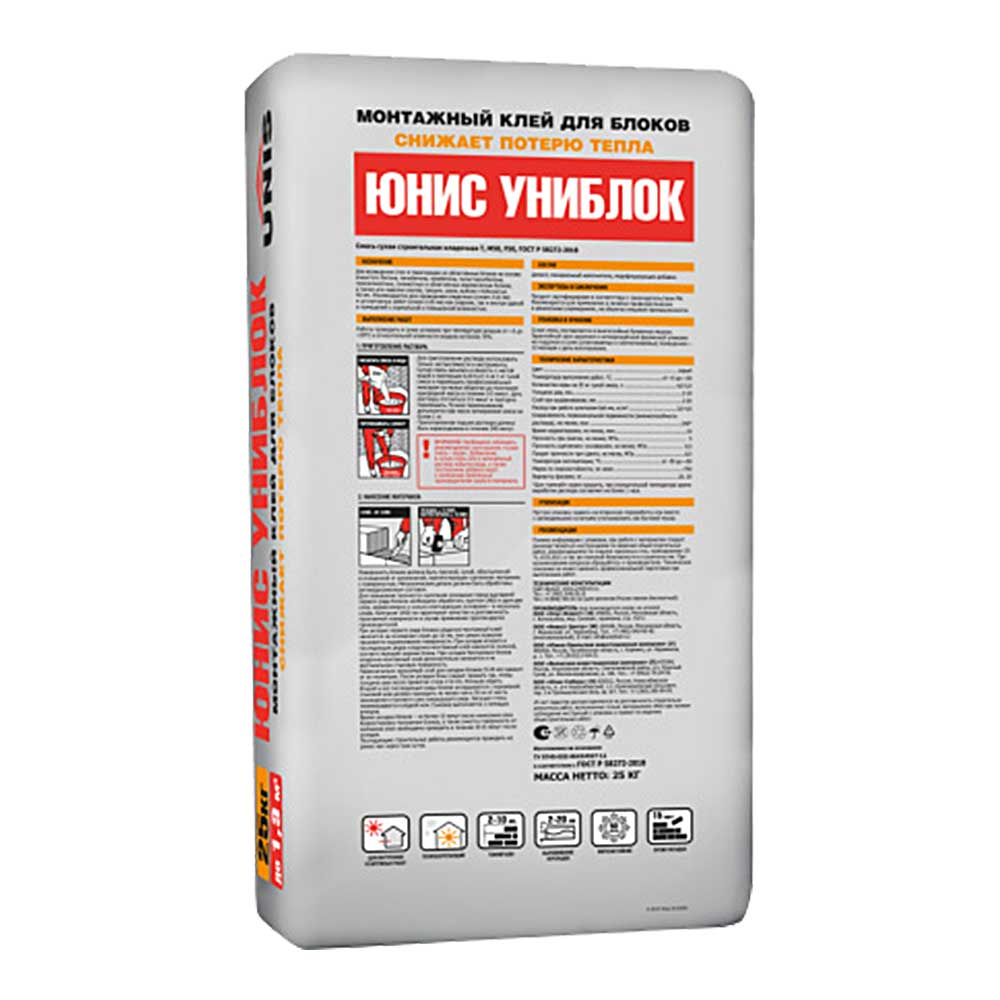 Клей кладочно-монтажный UNIS Униблок цементный, 25 кг