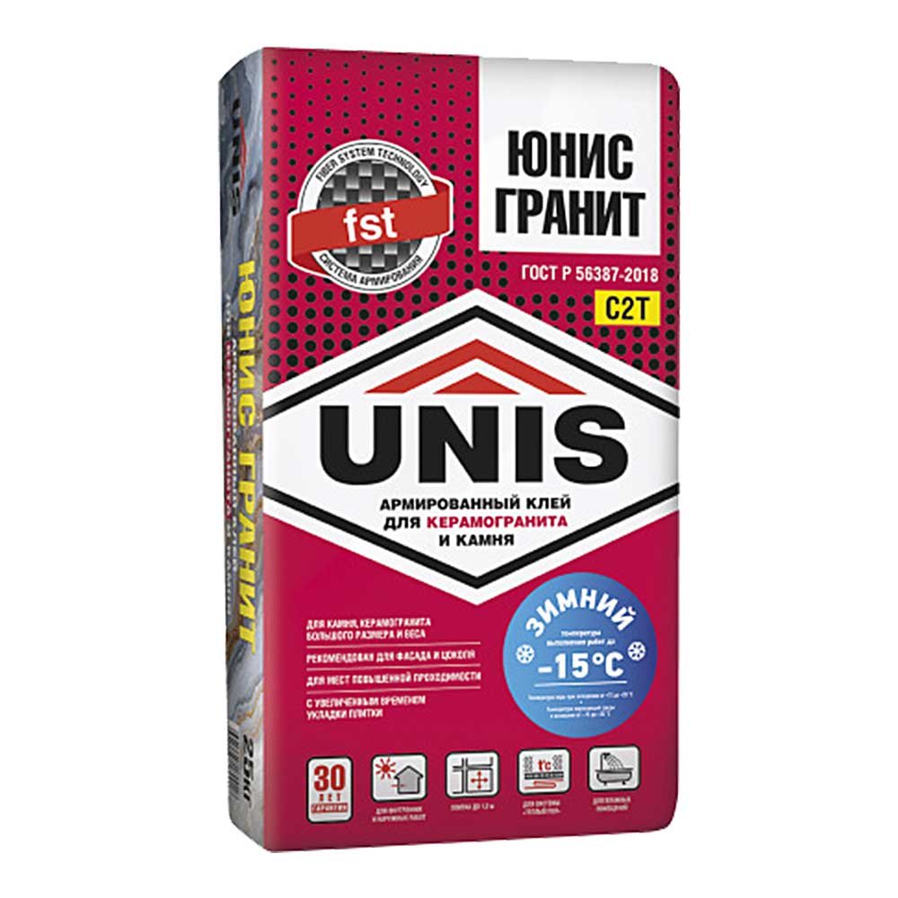 Клей армированный UNIS Юнис Гранит зимний для керамогранита и камня, 25 кг