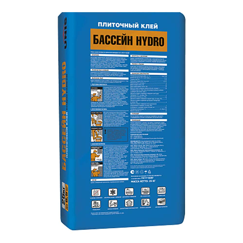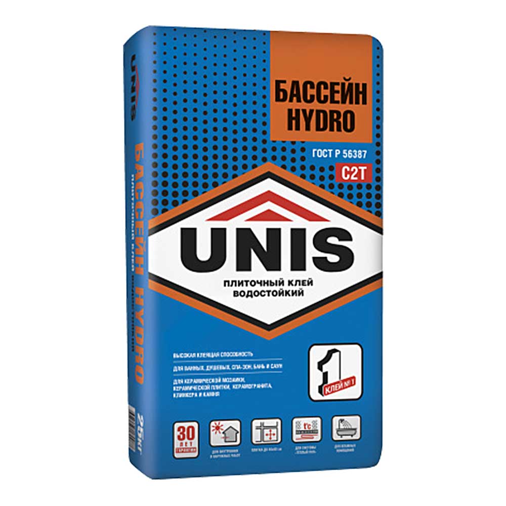 Плиточный клей UNIS Бассейн Hydro с гидроизоляционными свойствами, 25 кг