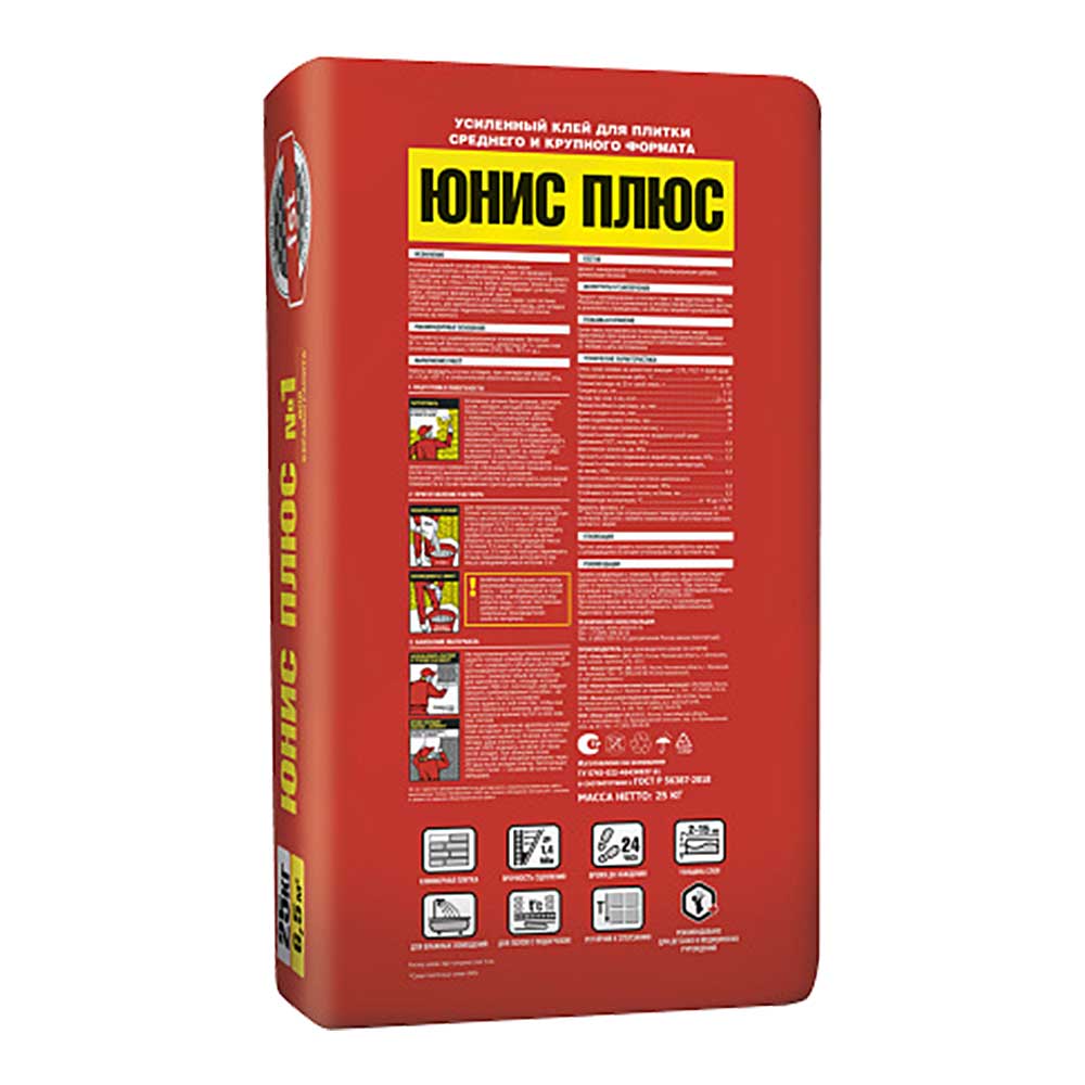 Плиточный клей UNIS Юнис ПЛЮС усиленный армированный, 25 кг