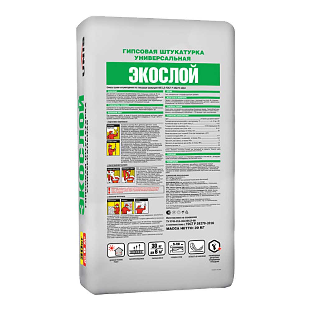 Штукатурка гипсовая UNIS Экослой безусадочная универсальная, 30 кг