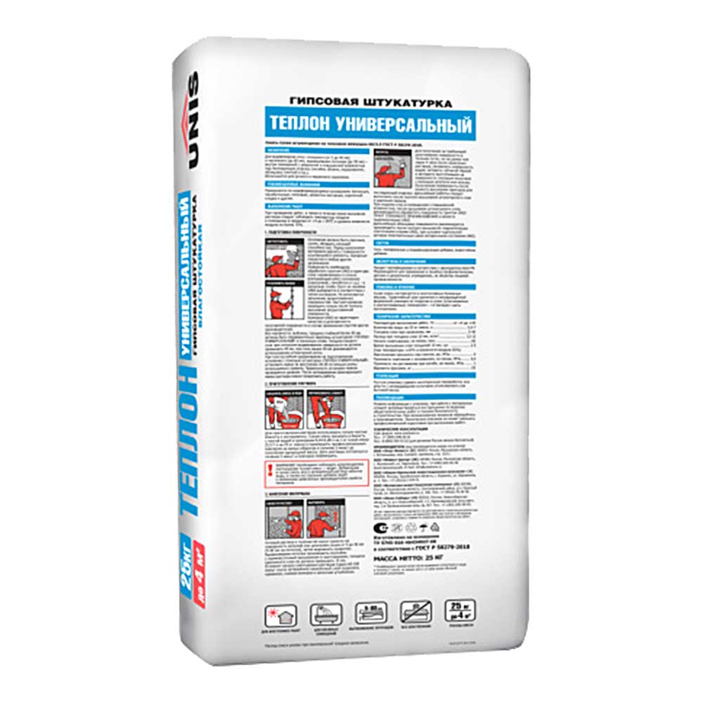 Штукатурка гипсовая UNIS Теплон Универсальный влагостойкая , 25 кг