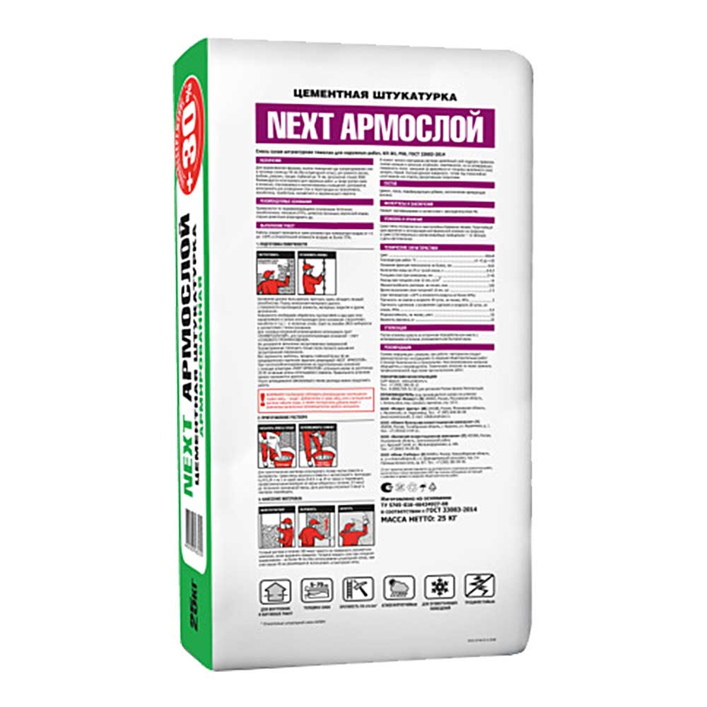 Штукатурка цементная UNIS Next Армослой теплосберегающая легкая армированная, 25 кг