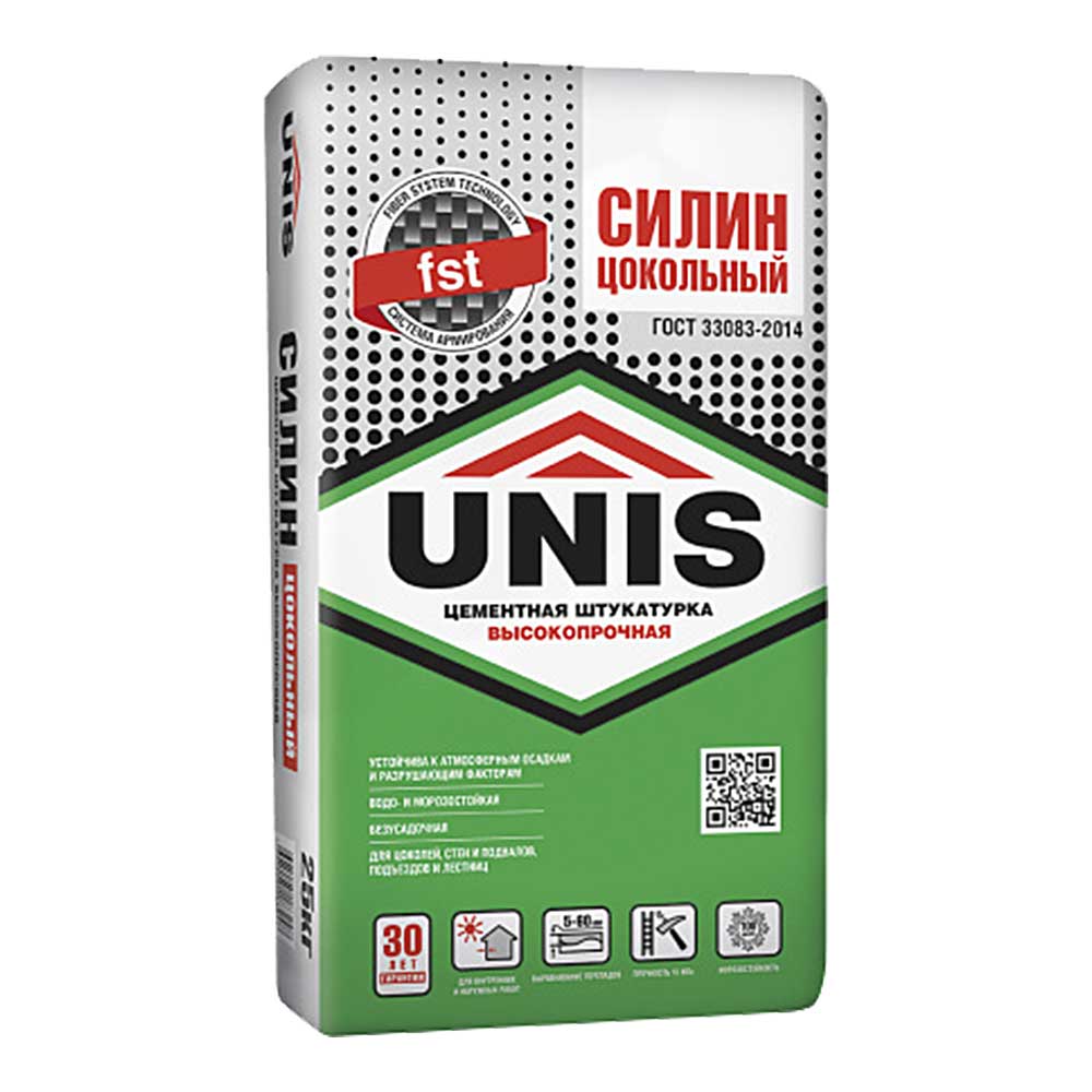 Штукатурка цементная UNIS Силин Цокольный высокопрочная армированная, 25 кг